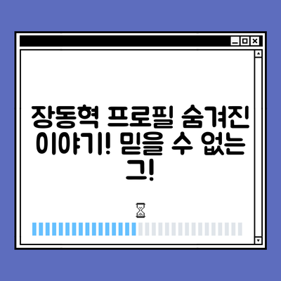 장동혁프로필: 믿을 수 없는 그 사람의 숨겨진 이야기!